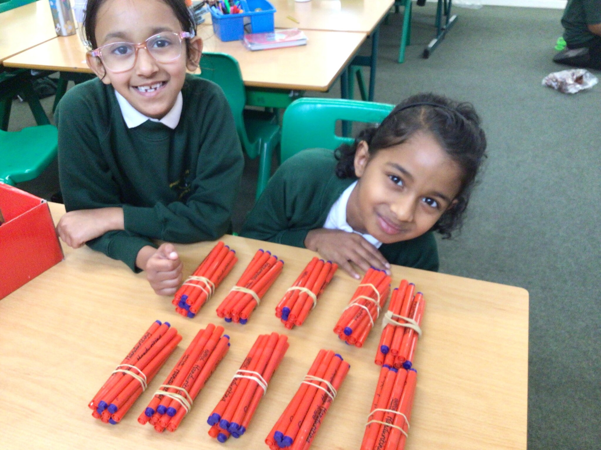 Today we used as many objects as we could find in our classroom to make 100! We had to make 10 groups of 10 to make it very clear and easy to count. We were very creative in how we presented our 100.