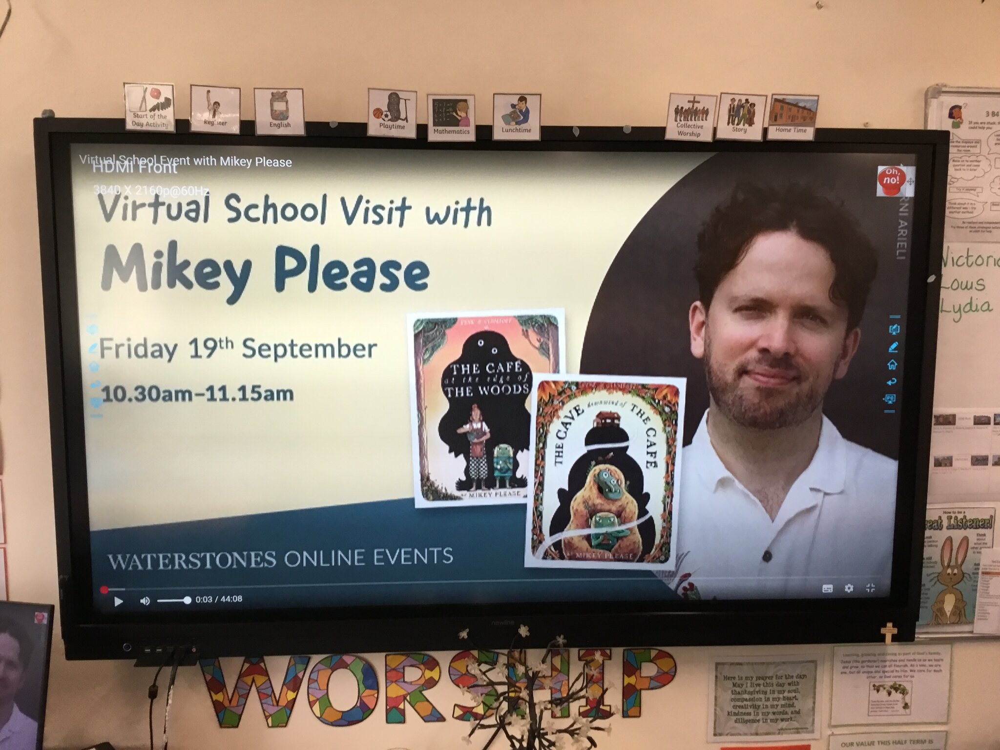 In preparation for writing our story next week, we took part in a virtual children’s author workshop with Mikey Please. He told us all about the process of writing a children’s book and showed us lots of his illustrations. It was interesting to see the different stages it takes to write and illustrate a story. We had a go at following the different steps to draw one of the characters.