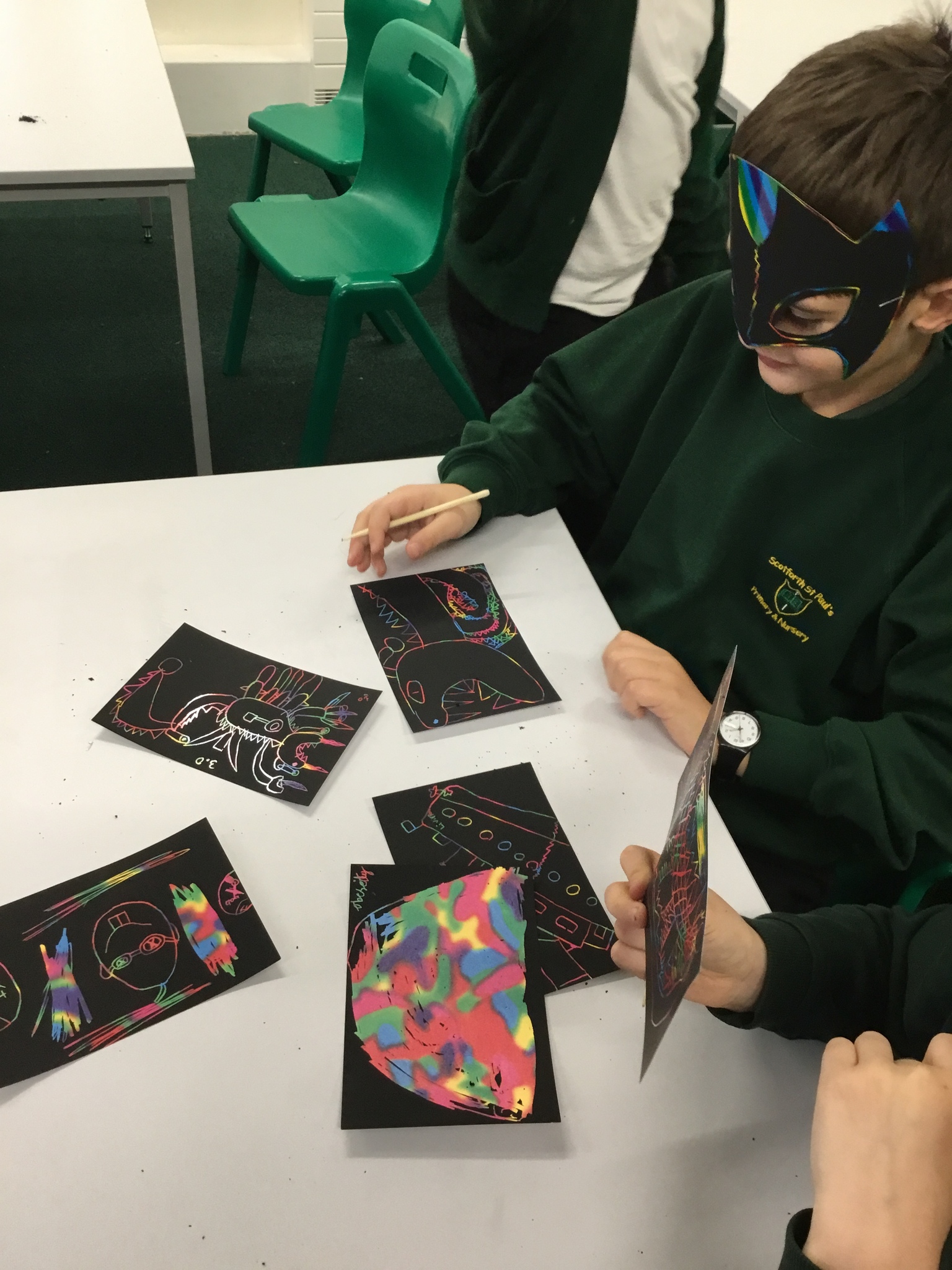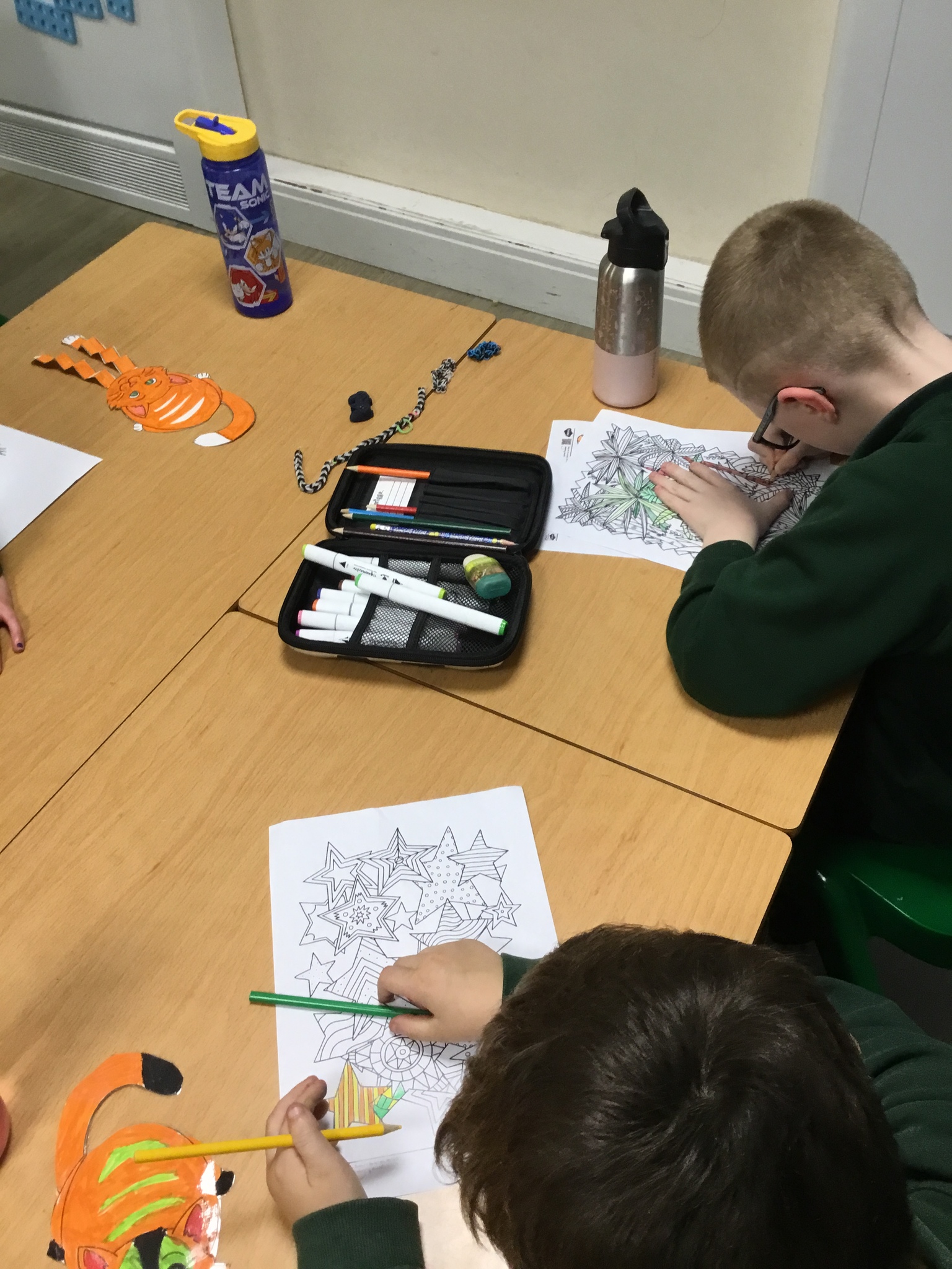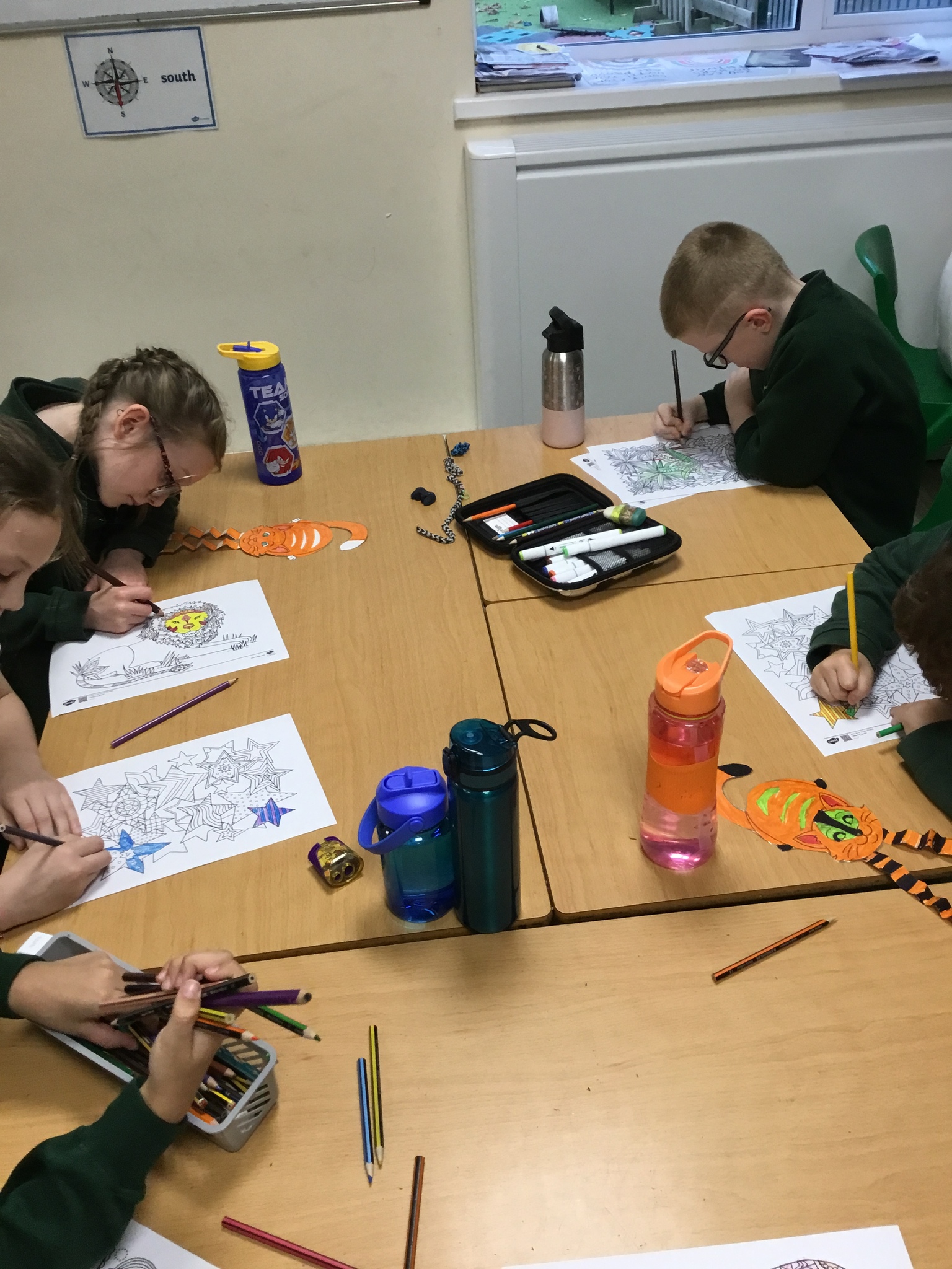 On Wednesday afternoon, the children chose from a wide range of well-being activities and spent time doing things to help their own mental health. It was lovely walking around school seeing the groups of children interacting with children from other classes and working with staff members they would not usually spend time with. The activities included a local walk, yoga, time in our sensory room, decorating a big wooden gingerbread man (see if you can find him in Lancaster over the Christmas holidays!), colouring, painting, making bracelets, loom bands and doorhangers, outdoor play, circuits, jigsaws, reading and scratch art. As you can see, there was something for everyone.