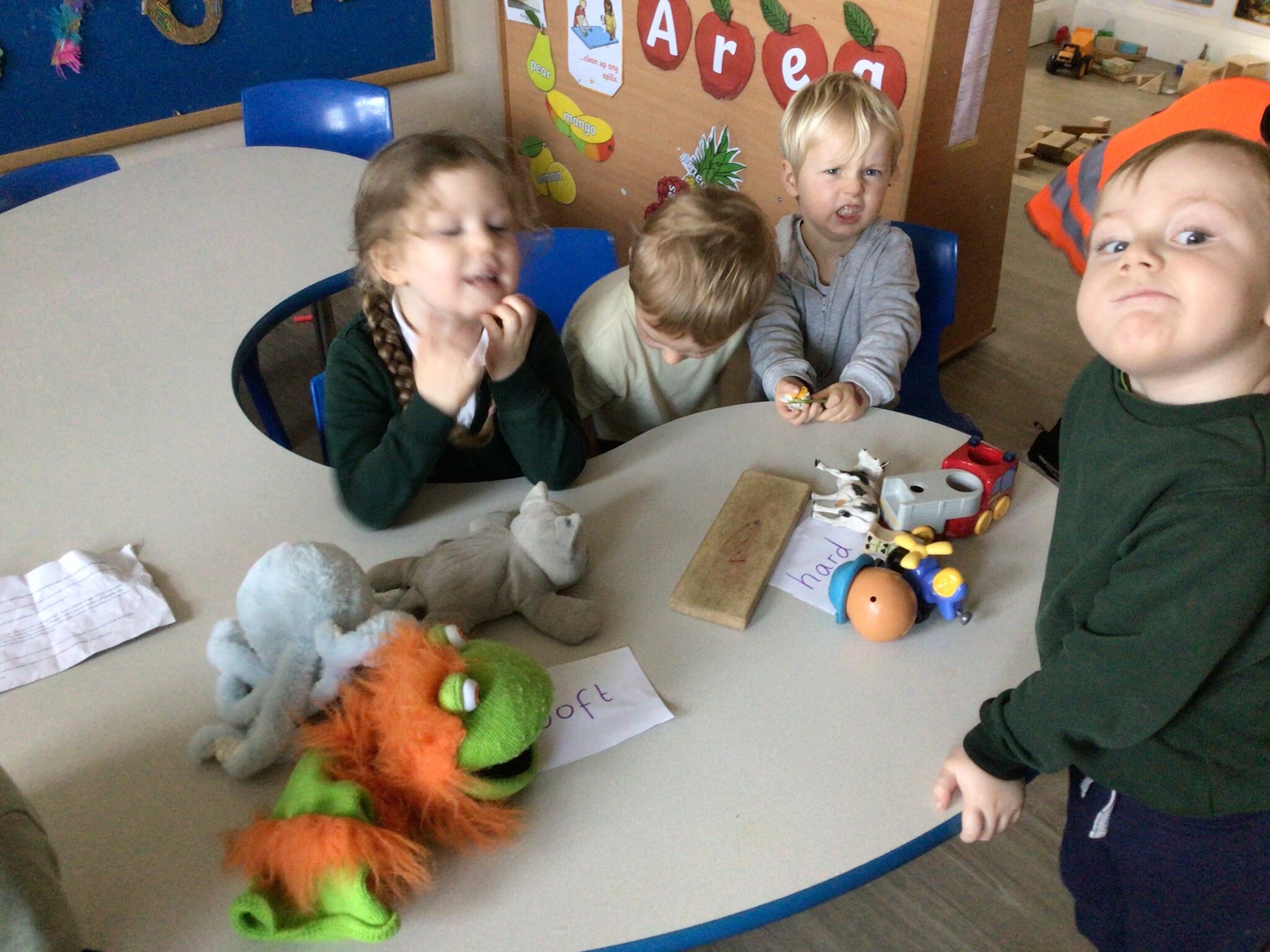 7 November 2025 Mrs Atkinson Class of 2026 After listening to the story of “Dogger” by Shirley Hughes we decided to find toys in Nursery that felt hard and soft. EYFS