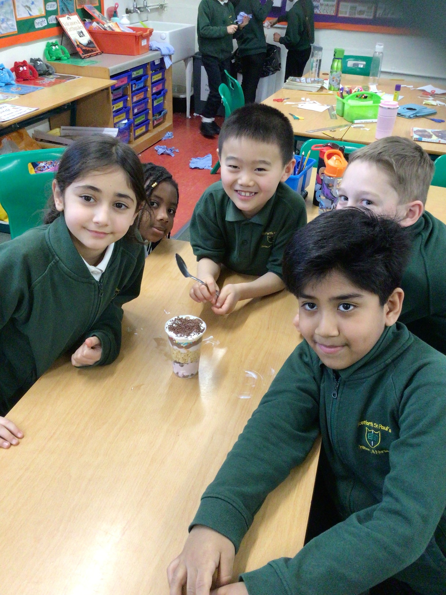We have been learning about how sedimentary rocks are formed. Today with Mrs Dowson in science we made food models to show the different layers found in sedimentary rocks. We really enjoyed tasting our creations at the end!