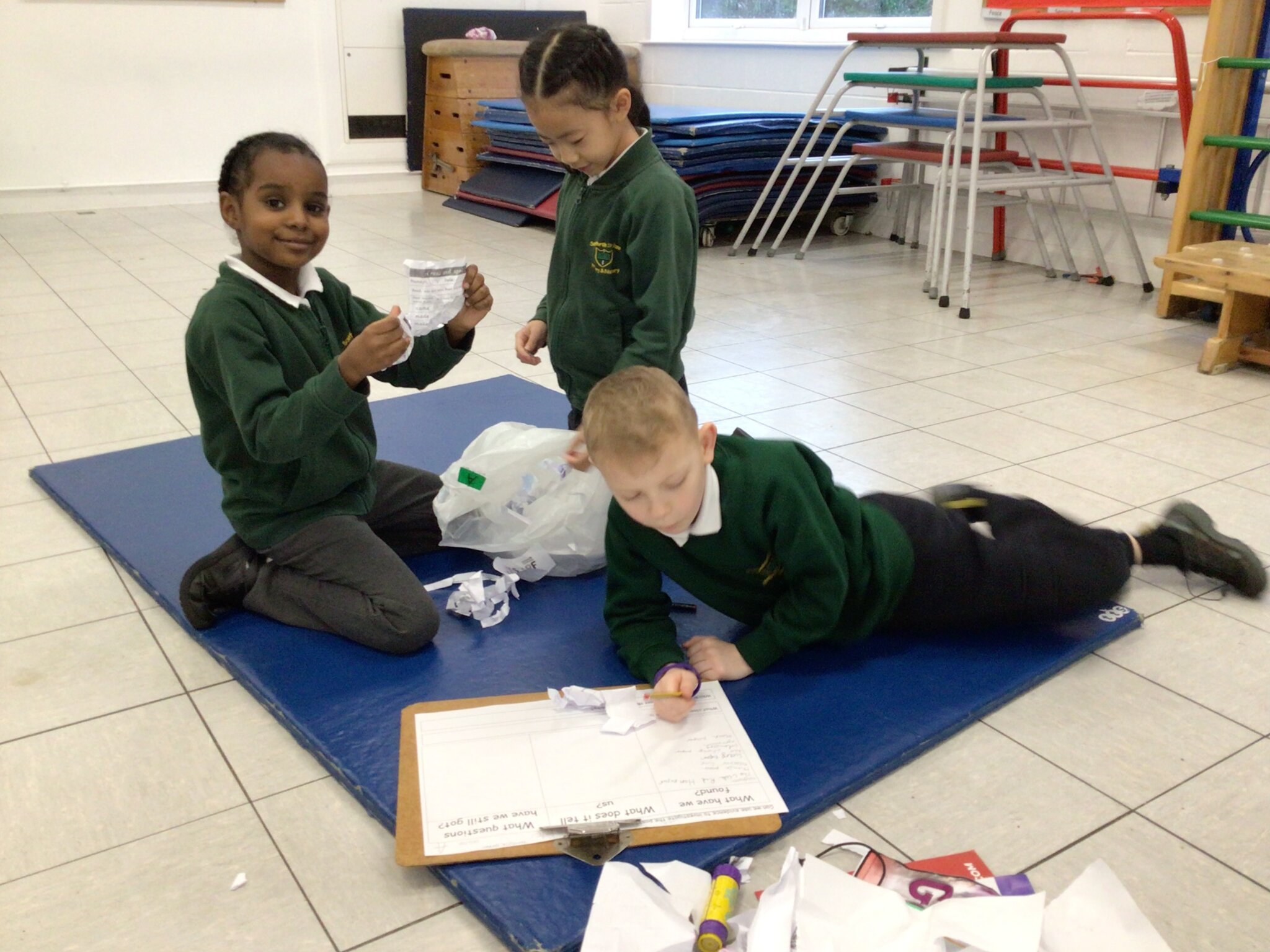 We are learning about the role of archaeologists in our new history topic about prehistoric Britain. We found out that archaeologists often dig for clues about past civilisations. We decided to look for clues about the past by looking through the bins bags from the different classes in school. We found loads of different objects like drawings, old Christmas cards, broken pens, worksheets and even a can of coke! These objects helped us work out which class each rubbish bag belonged to. It also showed us what each class had been doing this week. It was really helpful when we found names in the rubbish but even when we didn’t we could work out lots about the past from all the other clues!