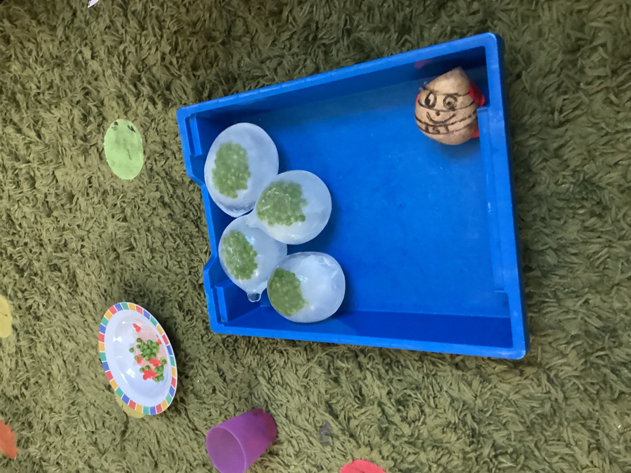 We wrote letters to Supertato asking for his help. We arrived into our classroom and found Evil Pea frozen in ice balloons. We then had a discussion about how he froze him and we need to make sure we don’t let the ice get warm or it will melt.