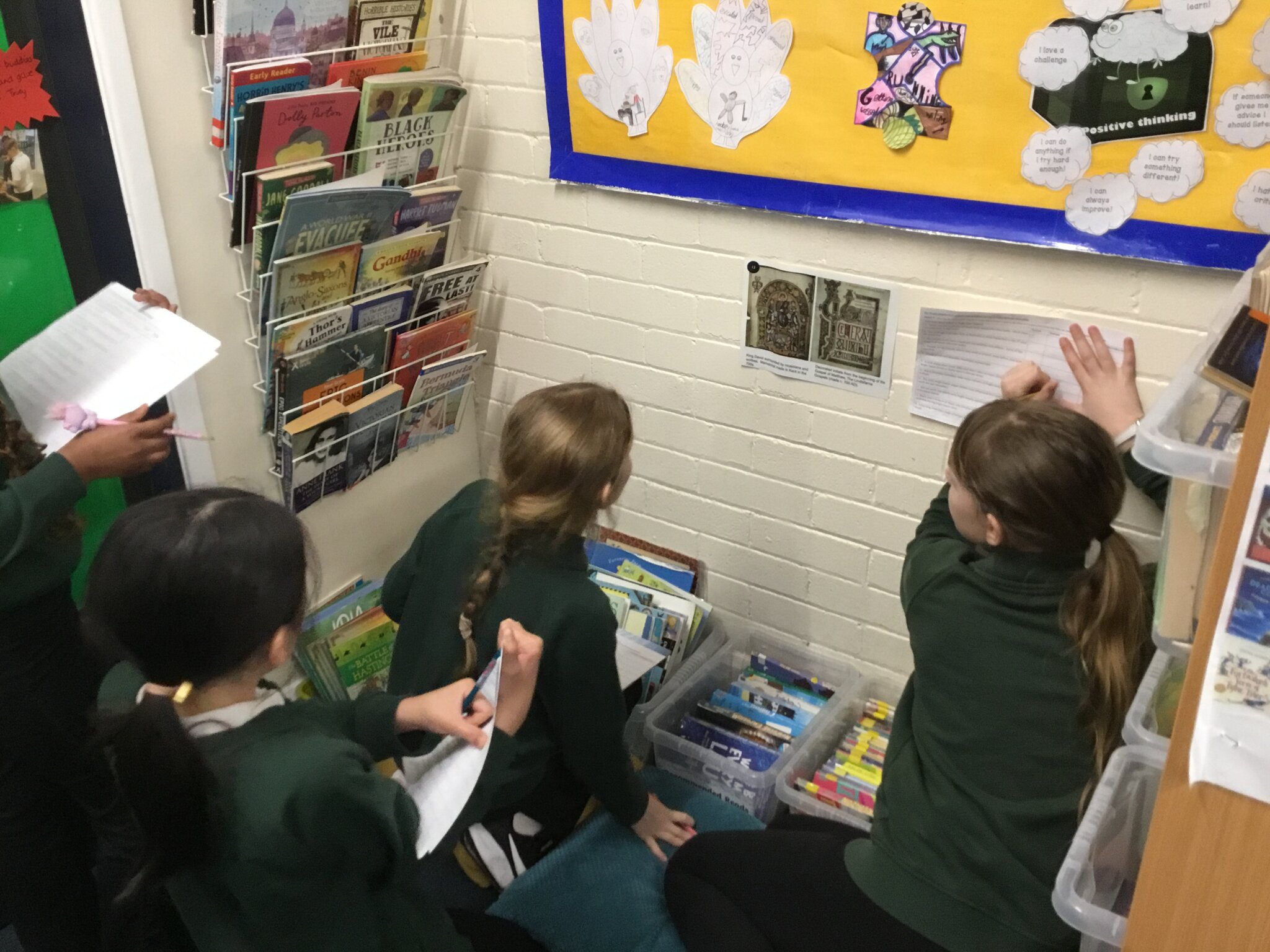 We went on a hunt around the classroom looking at a variety of different Anglo-Saxon sources. We decided if each piece of evidence was a primary or secondary source.