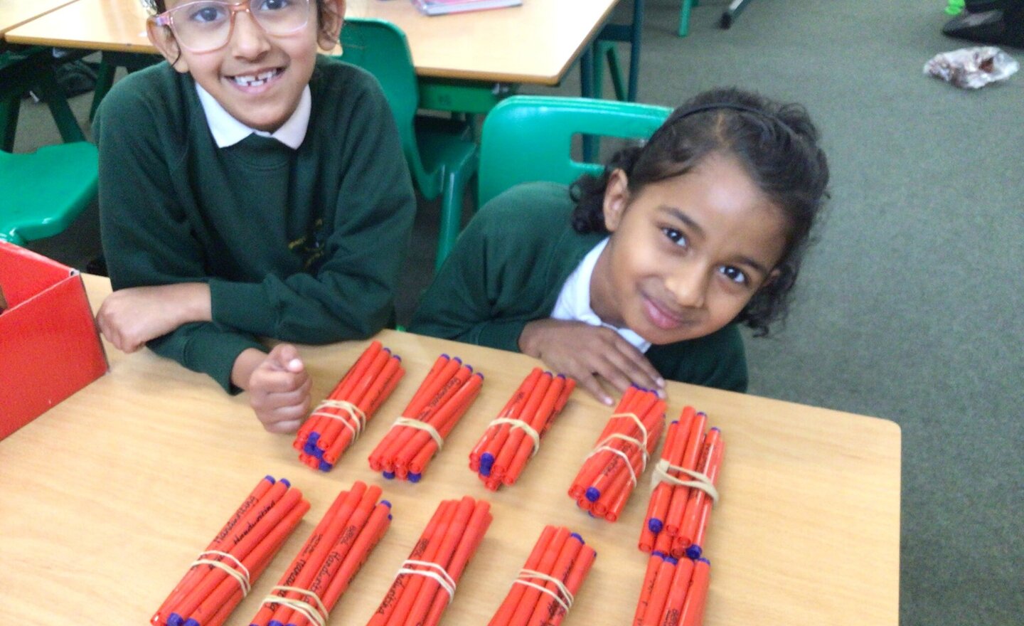 Today we used as many objects as we could find in our classroom to make 100! We had to make 10 groups of 10 to make it very clear and easy to count. We were very creative in how we presented our 100.