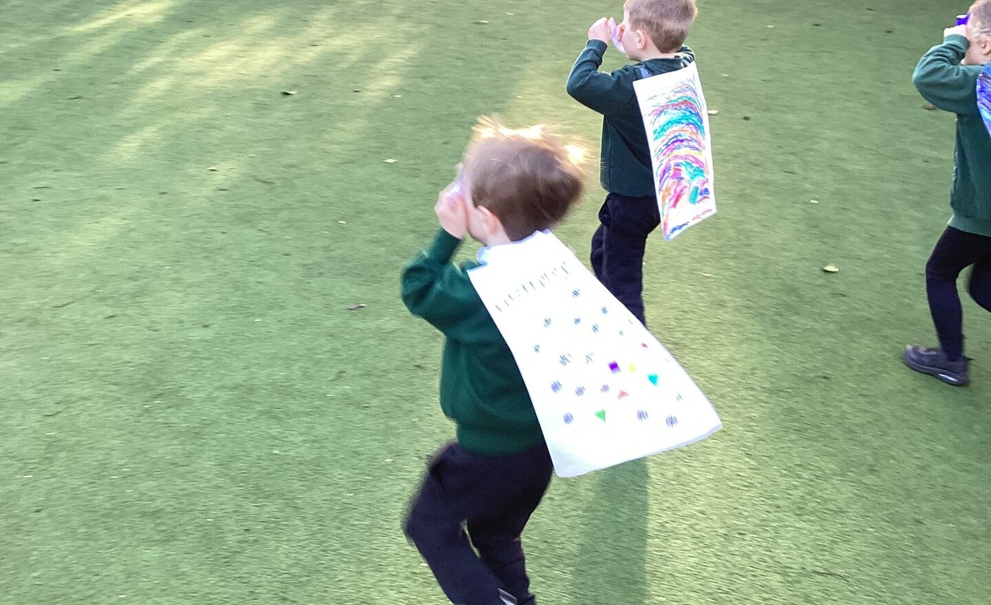 We have been looking at how to keep safe indoors and outdoors. We got ourselves into character, Super safety heroes. We went to see if we could see anything unsafe or anything we need to do to do when outside to keep ourselves and everyone else safe. You should never run by a road, don’t climb…