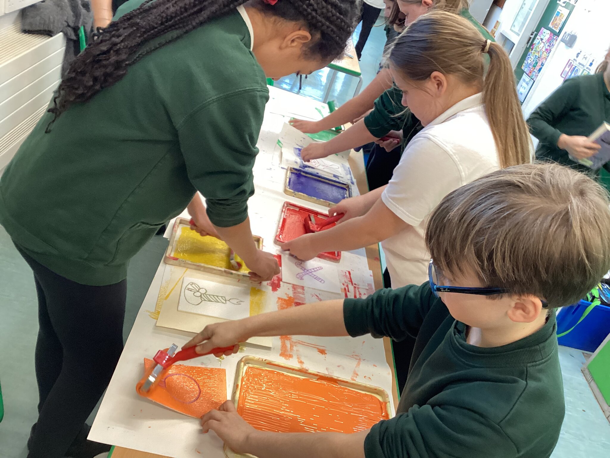 Today, we began our printing project, with the final product being our Christmas cards. The first stage involves making a simple print block and choosing the ink colour for the base of our design. It was really exciting to peel back and reveal our first print!