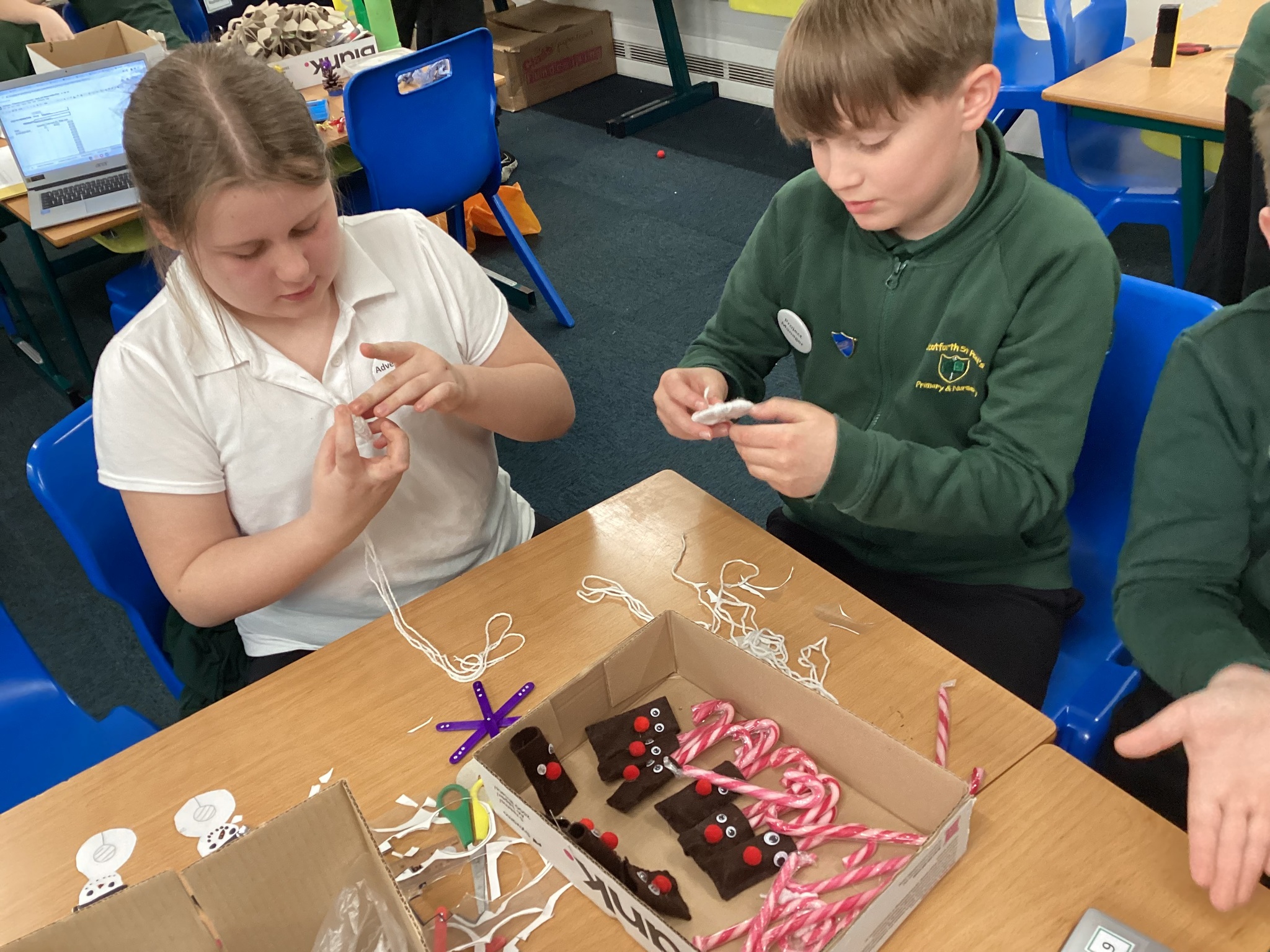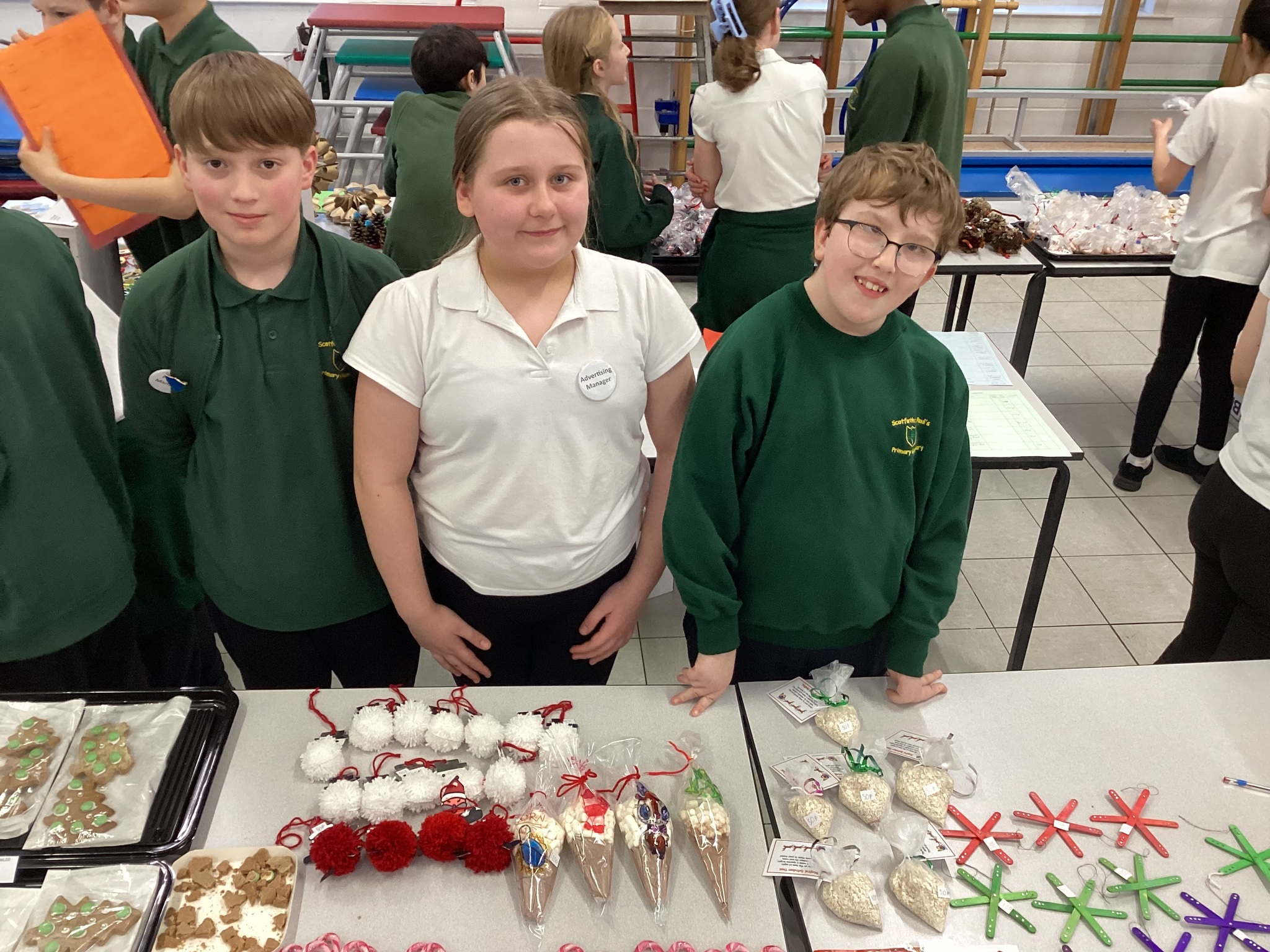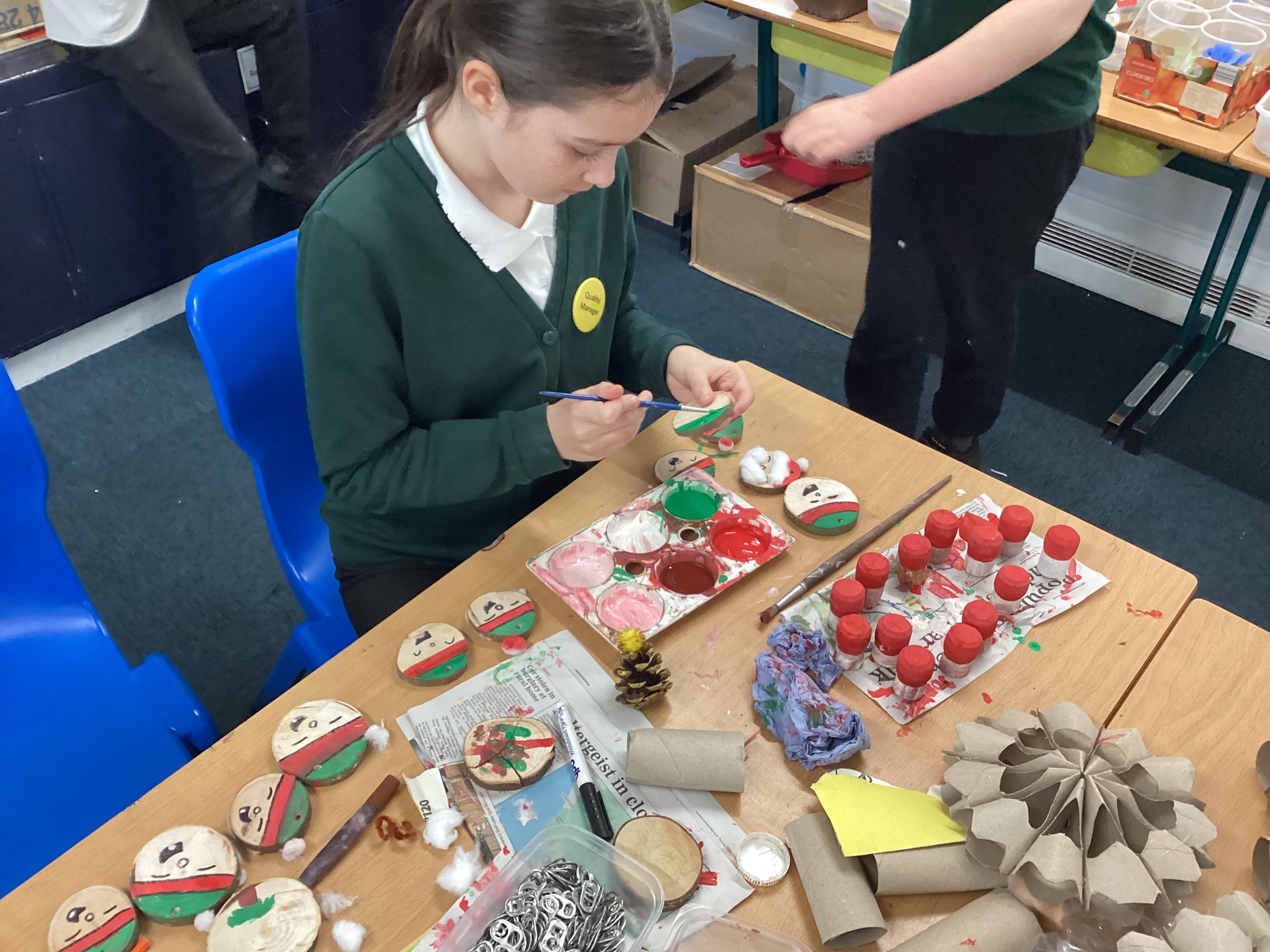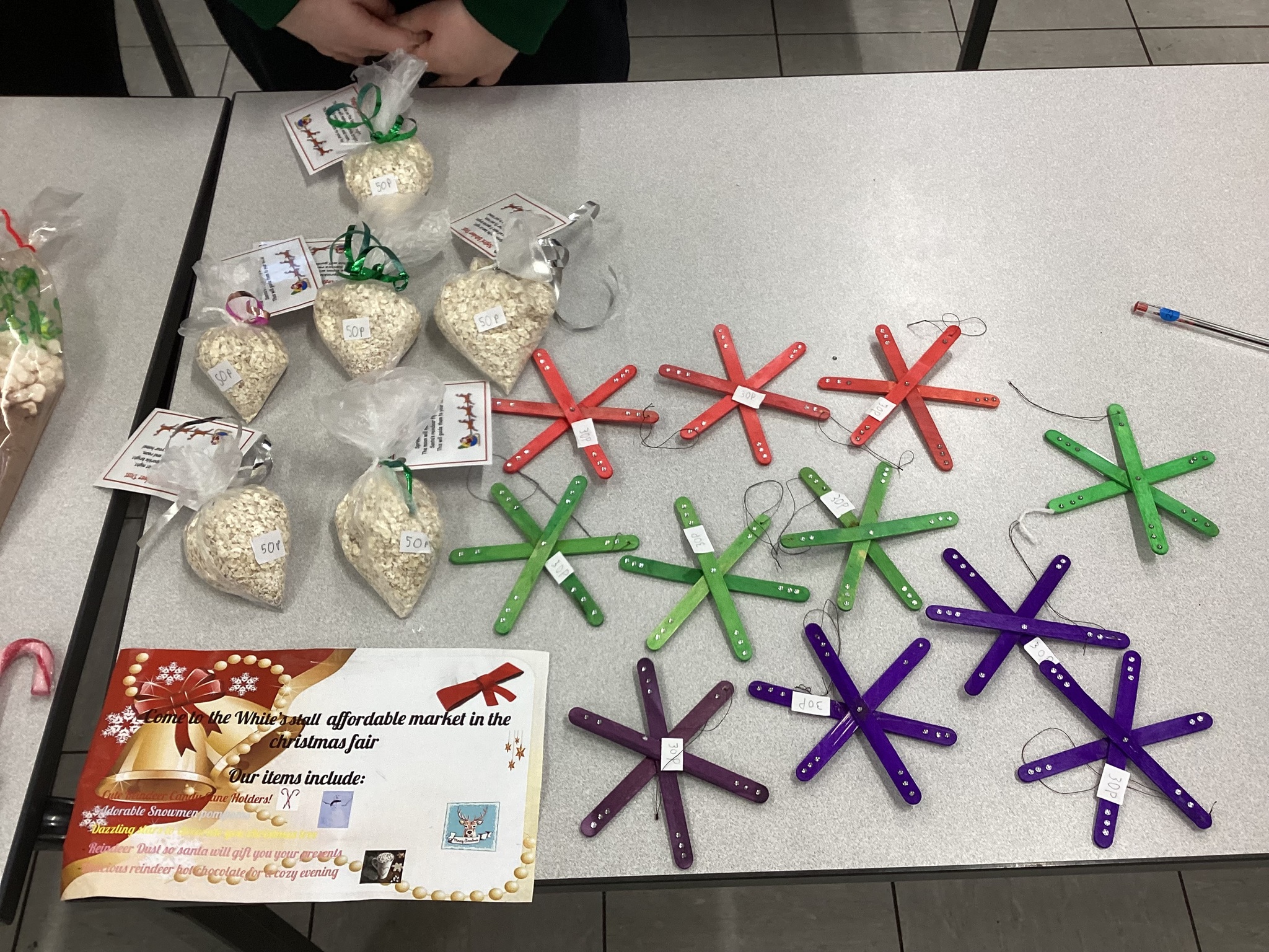 Year 6 have been working hard all week, to produce items to sell at the Christmas Fair today. Each group was given an “investment” of £15 by Scot4all, with which to buy resources and every group made a profit from the sale of their various Christmas-themed products. We had to use a huge variety of skills we have learnt throughout our years in school, including maths, computing, art and DT, as well as showing resilience, perseverance and teamwork.